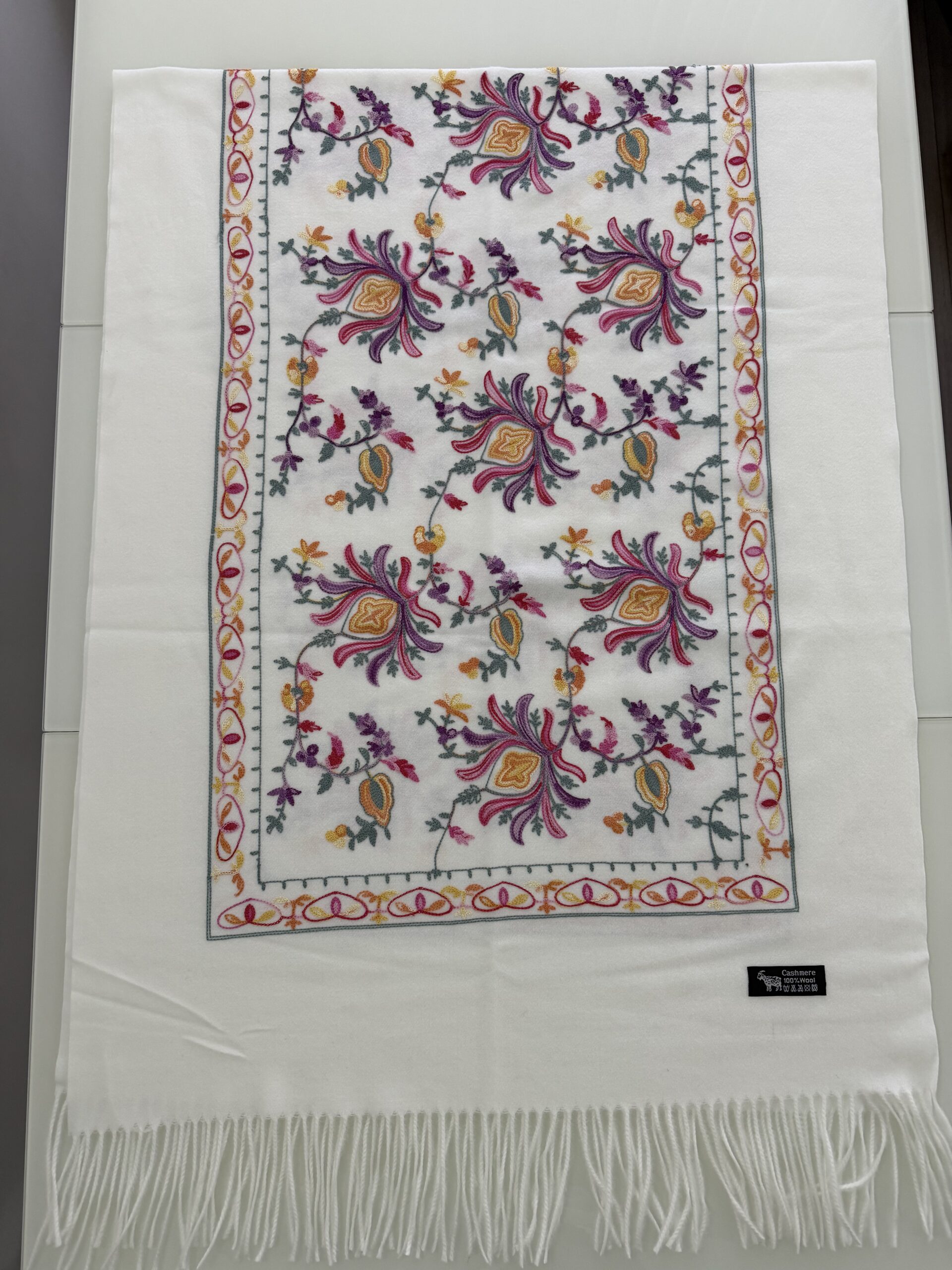 Ervaar ultieme zachtheid en tijdloze elegantie met onze dikke cashmere sjaal, verfijnd afgewerkt met subtiele geborduurde details. De rijke stof voelt heerlijk zacht aan en biedt optimale warmte tijdens koude dagen, terwijl het verfijnde borduurwerk zorgt voor een exclusieve en stijlvolle uitstraling.