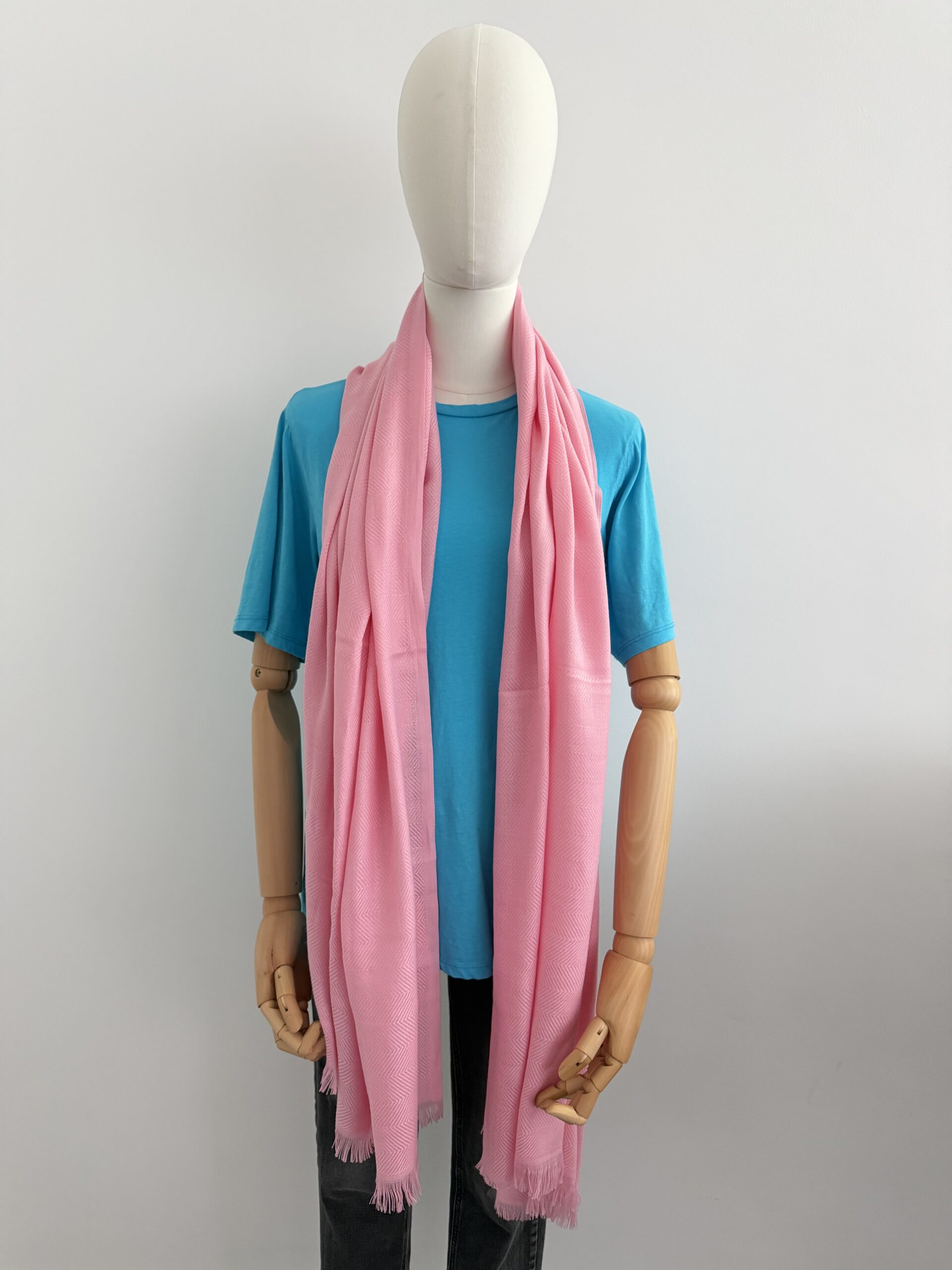 Deze elegante sjaal is geweven van zachte, hoogwaardige pashmina wol en uitgevoerd in een klassiek visgraatpatroon. De fijne structuur en het subtiele patroon geven de sjaal een tijdloze uitstraling, terwijl de luxueuze wol zorgt voor uitzonderlijke warmte en comfort. Perfect voor zowel formele als casual gelegenheden.